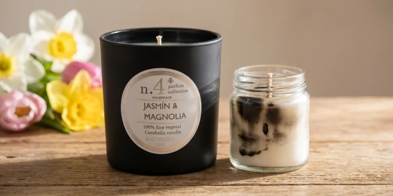 Fíjate en el precio. Una vela de cera vegetal con fragancias veganas o aceites esenciales reales tiene un coste más alto. Si es muy barata, algo no cuadra.